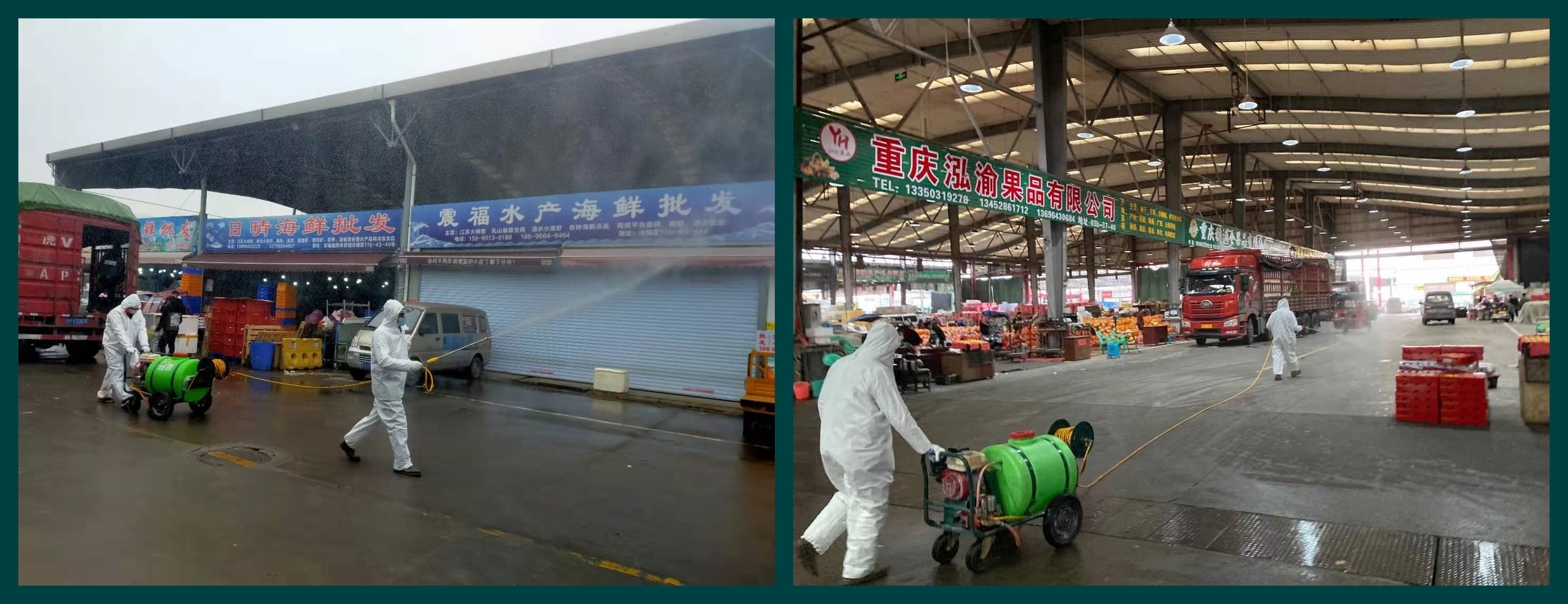 此外,為了進一步協(xié)助雙福農(nóng)貿(mào)城對“進口冷鏈食品疫情防控工作”的整體部署,我司以進口水果、冷凍冷藏進口食品和水產(chǎn)品為重點品種,以涉冷經(jīng)營環(huán)境為重點區(qū)域,對市場內(nèi)道路口、進場車輛、冷鏈食品內(nèi)外包裝、凍庫、轉運存放區(qū)域、運輸工具進行重復而細密的噴灑消毒,切實做到起步早、不間斷、不留死角,從而高標準、高質量、高效率地實現(xiàn)了雙福農(nóng)貿(mào)城預防性消毒工作的全覆蓋。
